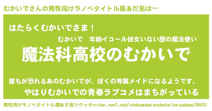 | 女子向けラノベタイトル風あだ名 | 『むかいでなんてお断りですっ。』 |