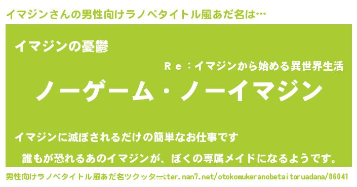 | 女子向けラノベタイトル風あだ名 | 『死神イマジンの再婚』 |