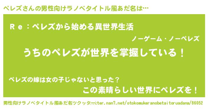 | 意味不明あだ名 | 『自称ペレズ』『住所不定無職ペレズ(2歳)』 |