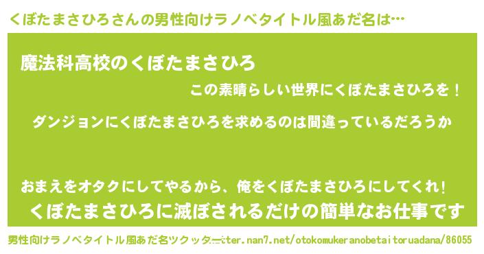 | 意味不明あだ名 | 『とにかく怪しいくぼたまさひろ』 |