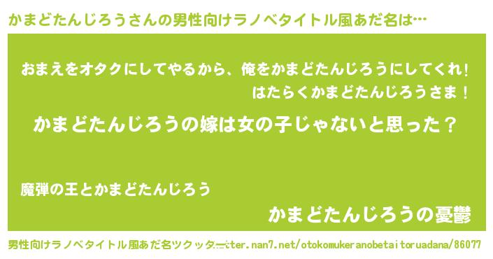 | 女子向けラノベタイトル風あだ名 | 『かまどたんじろう様がみてる』 |