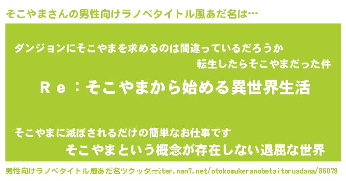 | ヒーロー風カッコイイあだ名 | 『究極戦士ソコヤマ』『暗黒騎士ソコ』 |