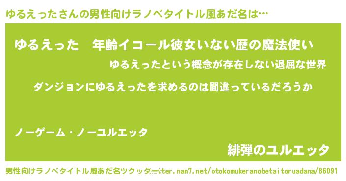 | 女子向けラノベタイトル風あだ名 | 『ゆるえったは平凡を望む』 |