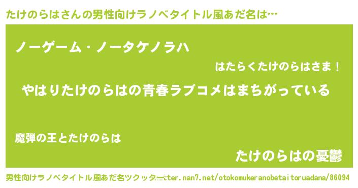 | 女子向けラノベタイトル風あだ名 | 『たけのらはの雑貨屋さん』 |
