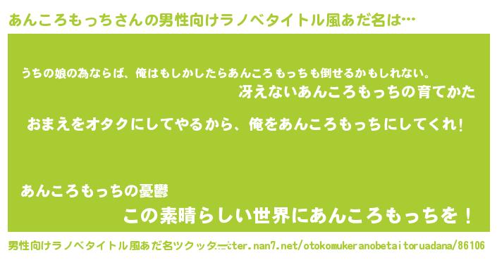 | 女子向けラノベタイトル風あだ名 | 『あんころもっち夫妻のなれそめ』 |
