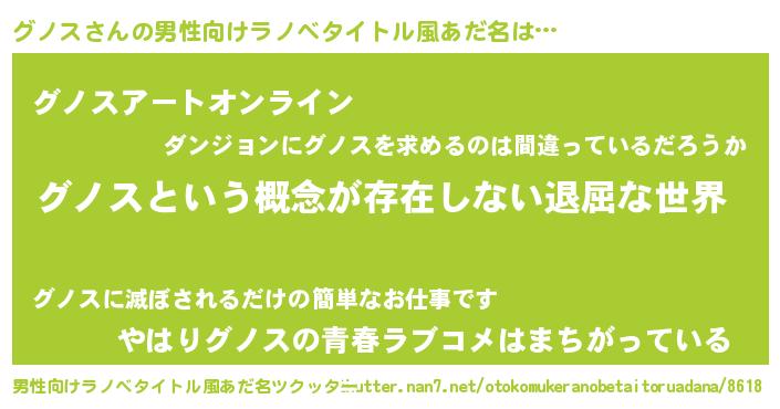 | 胡散臭い通販商品みたいなあだ名 | 『来世でも幸せになれる健康食品…その名も「グノス」』 |