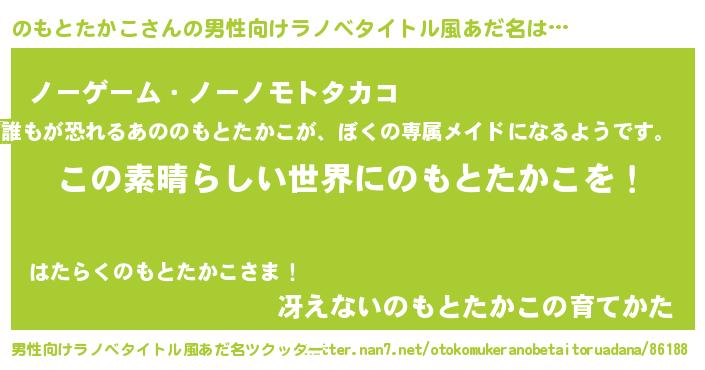 | ヘコむあだ名 | 『のもとたかこ(笑)』『なまこ酢』 |