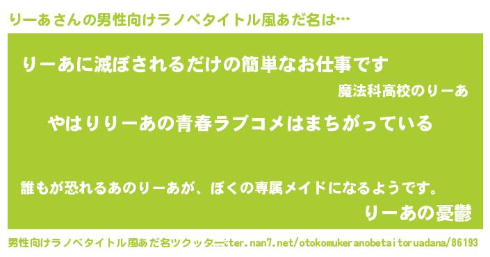 | 女子向けラノベタイトル風あだ名 | 『りーあの雑貨屋さん』 |
