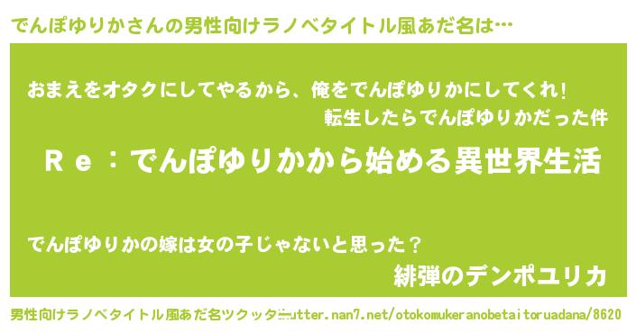 | 女子向けラノベタイトル風あだ名 | 『闇のでんぽゆりか』 |