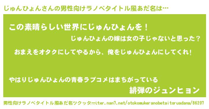 | 女子向けラノベタイトル風あだ名 | 『じゅんひょん夫妻のなれそめ』 |