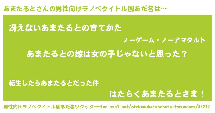| 胡散臭い通販商品みたいなあだ名 | 『伝統あるサプリメント…その名も「あまたると」』 |