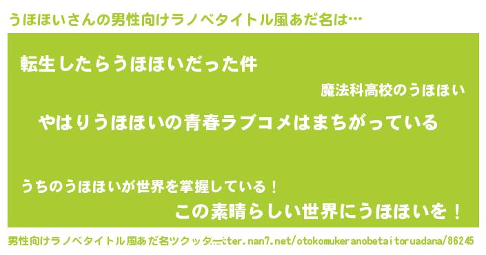 | ヘコむあだ名 | 『豆乳』『うほもー』『うほっ子』 |