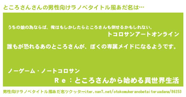 | 女子向けラノベタイトル風あだ名 | 『異世界でカフェところさんを開店しました。』 |
