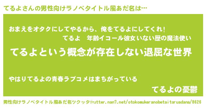 | ヒーロー風カッコイイあだ名 | 『ネオテルヨ』『正義の使者てるよ』 |