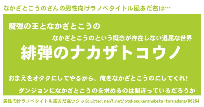 | ヘコむあだ名 | 『なかお』『なかざとこうの(小並感)』 |