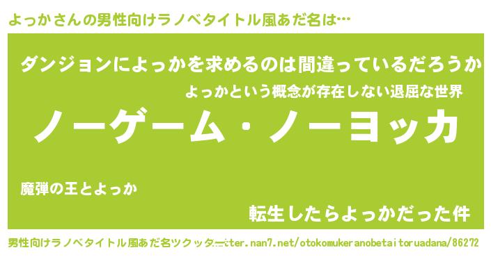 | ヒーロー風カッコイイあだ名 | 『慈愛の使者よっか』『銀牙騎士ヨッ』 |