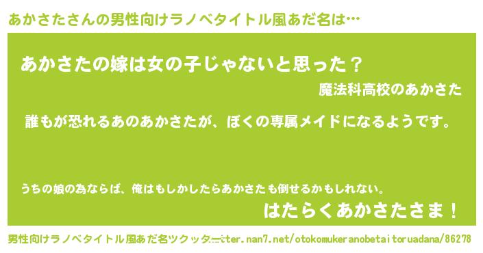 | 女子向けラノベタイトル風あだ名 | 『異世界でカフェあかさたを開店しました。』 |