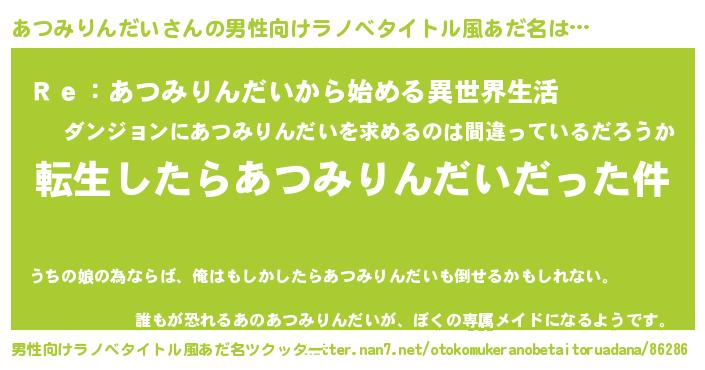 | ロボットアニメ | 搭乗するロボットの名前『あつみりんだいグァンダム弐号機』 |