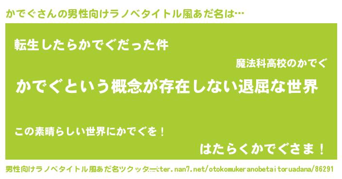 | 女子向けラノベタイトル風あだ名 | 『かでぐの契約王妃』 |