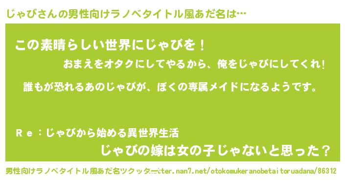| 胡散臭い通販商品みたいなあだ名 | 『前代未聞の健康食品…その名も「じゃび」』 |