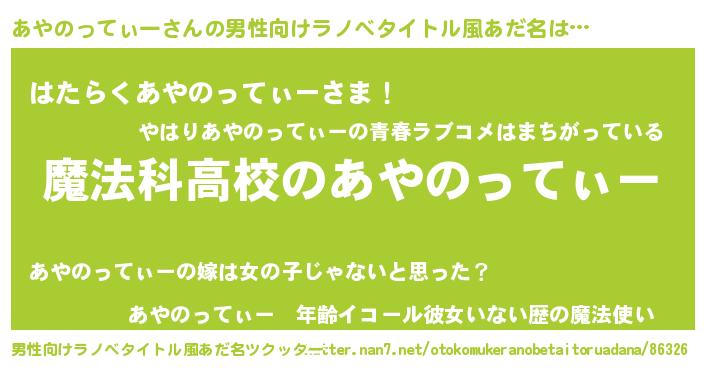 | 意味不明あだ名 | 『自称あやのってぃー』 |
