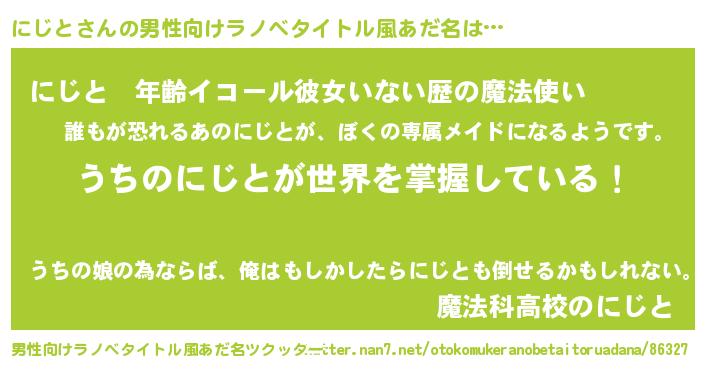 | 意味不明あだ名 | 『ニラ科にじと属』『自称にじと』 |