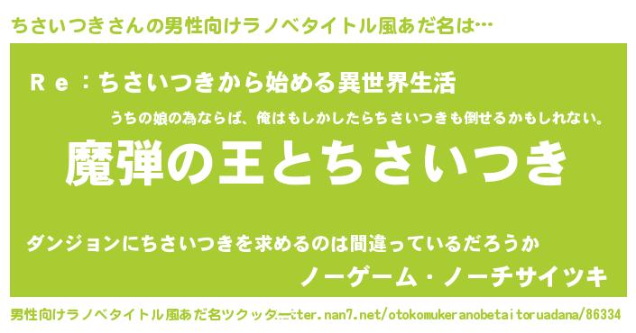 | 女子向けラノベタイトル風あだ名 | 『乙女ゲームの破滅フラグしかない悪役ちさいつきに転生してしまった…』 |