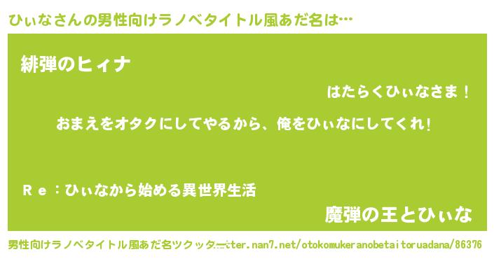 | 女子向けラノベタイトル風あだ名 | 『ひぃな恋絵巻』『首の姫と首なしひぃな』 |