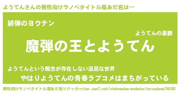 | 意味不明あだ名 | 『住所不定無職ようてん(12歳)』 |