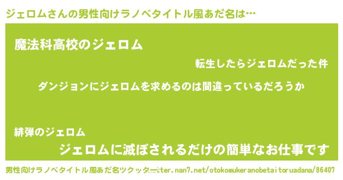 | 胡散臭い通販商品みたいなあだ名 | 『伝統あるサプリメント…その名も「ジェロム」』 |