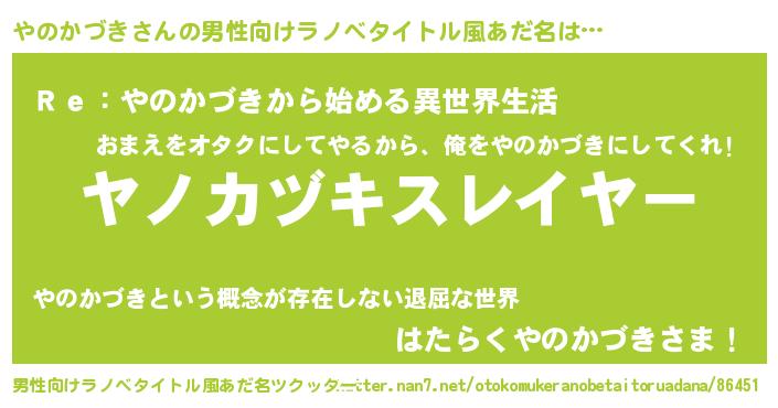 | ヘコむあだ名 | 『やのかづき(笑)』『やのっ子』 |