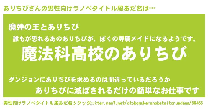 | 意味不明あだ名 | 『自称ありちび』『永久保存ありちび』 |