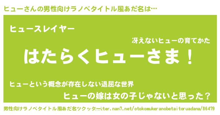 | 胡散臭い通販商品みたいなあだ名 | 『信頼と実績のペンダント…その名も「ヒュー」』 |