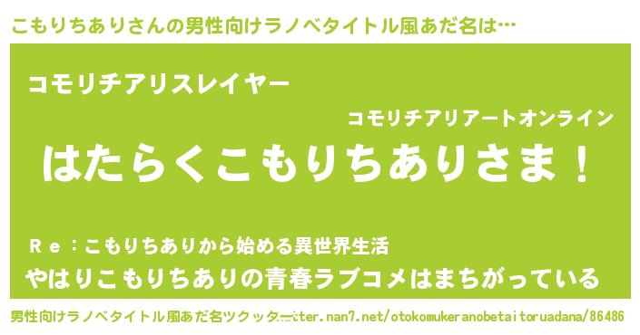 | 胡散臭い通販商品みたいなあだ名 | 『幸せが訪れる高級そうな絵画…その名も「こもりちあり」』 |
