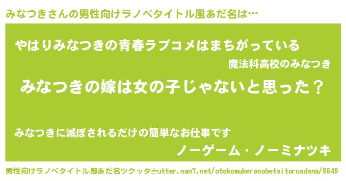 | ヒーロー風カッコイイあだ名 | 『幻影騎士ミナ』『ウルトラみなつきマン』 |