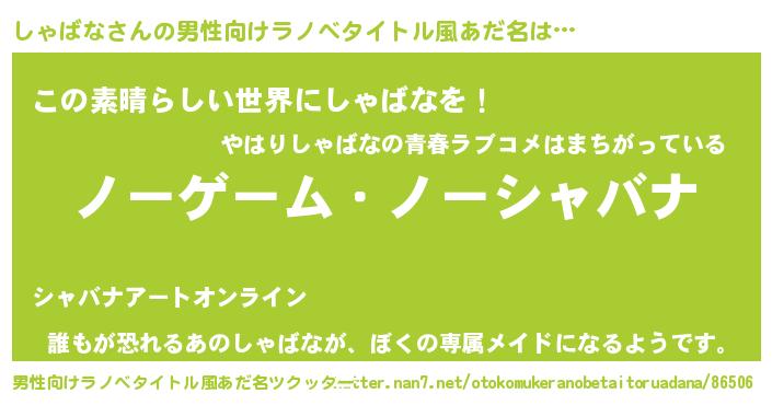 | ヘコむあだ名 | 『しゃばな(小並感)』『酢こんぶ』 |
