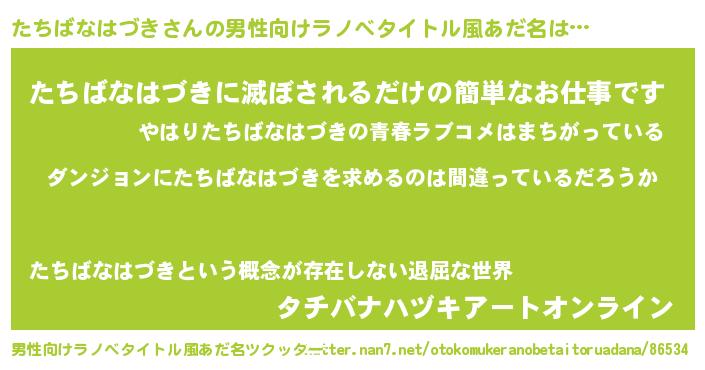 | 女子向けラノベタイトル風あだ名 | 『たちばなはづきは平凡を望む』 |