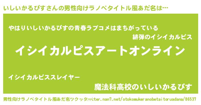 | 胡散臭い通販商品みたいなあだ名 | 『モテモテ間違いなしブレスレット…その名も「いしいかるぴす」』 |