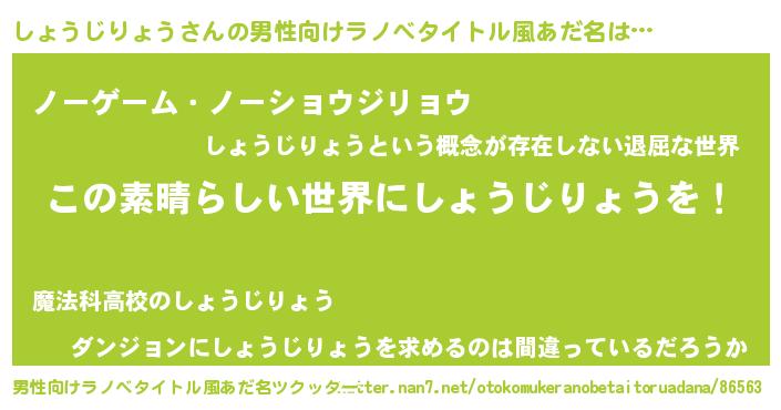| 女子向けラノベタイトル風あだ名 | 『悪役しょうじりょうに転生したようですが、知った事ではありません』 |