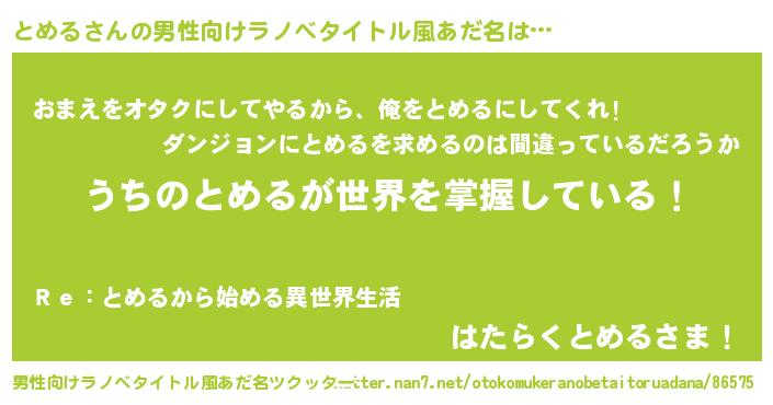 | 女子向けラノベタイトル風あだ名 | 『男装とめるの憂鬱な任務』 |