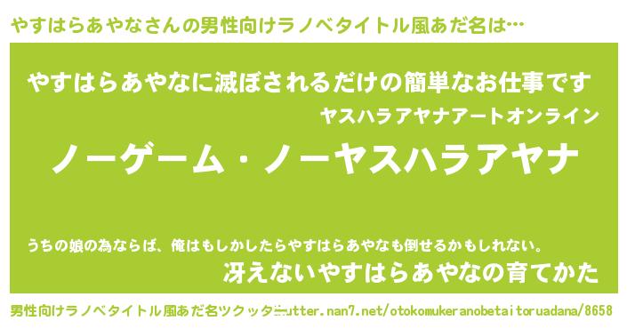 | 胡散臭い通販商品みたいなあだ名 | 『モンドセレクションを受賞した隕石のかけら…その名も「やすはらあやな」』 |
