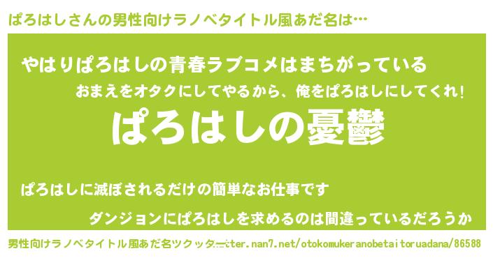 | 女子向けラノベタイトル風あだ名 | 『ぱろはし姫と円卓の騎士』 |