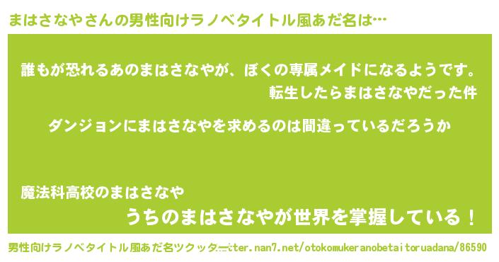 | 胡散臭い通販商品みたいなあだ名 | 『信頼と実績のサプリメント…その名も「まはさなや」』 |