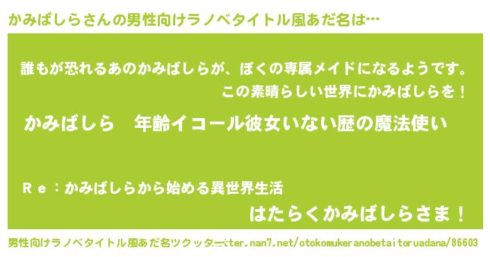 | 胡散臭い通販商品みたいなあだ名 | 『前代未聞の健康食品…その名も「かみばしら」』 |