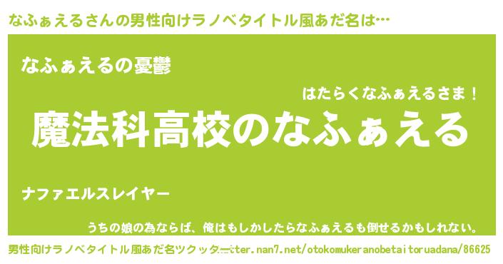| ファンタジー風あだ名 | 『ゼナフトゥ』『ナフフェル』 |