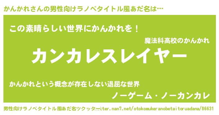 | ヒーロー風カッコイイあだ名 | 『仮面カンダー』『慈愛の使者かんかれ』 |