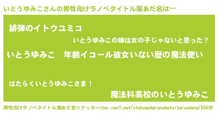 | 女子向けラノベタイトル風あだ名 | 『いとうゆみこの玉の輿計画!』 |