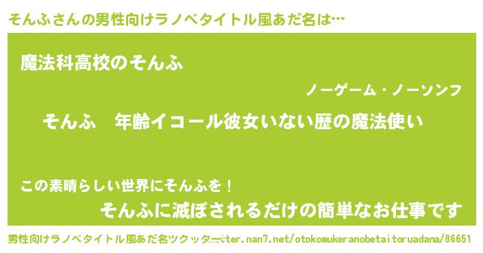 | 意味不明あだ名 | 『ヨモギ科そんふ属』『自称そんふ』 |