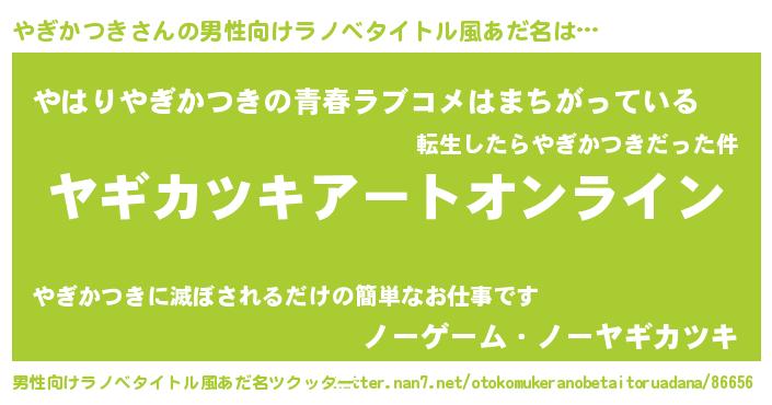 | ファンタジー風あだ名 | 『ヤギフェル』『エターナルヤギカツキー』 |