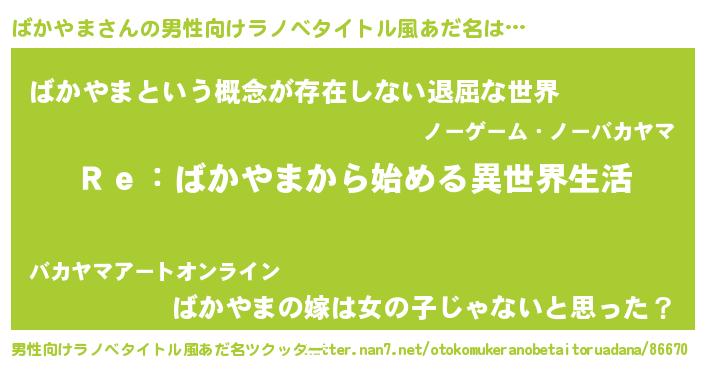 | 意味不明あだ名 | 『自称ばかやま』『永久保存ばかやま』 |